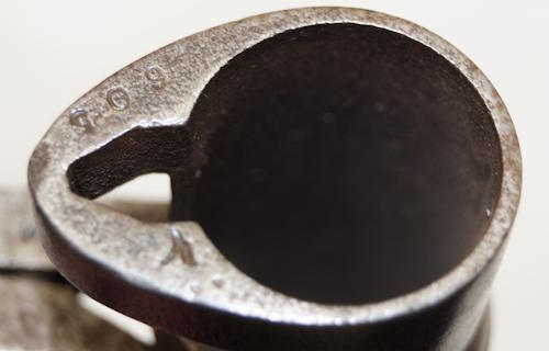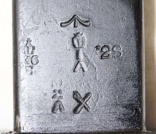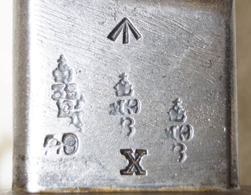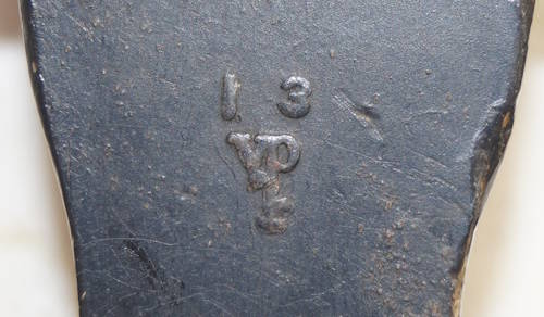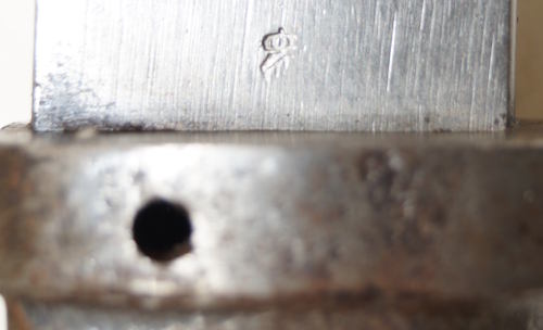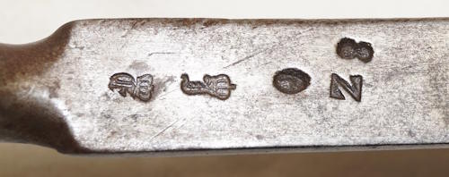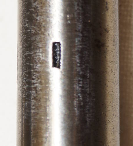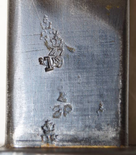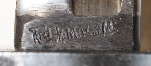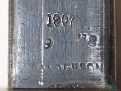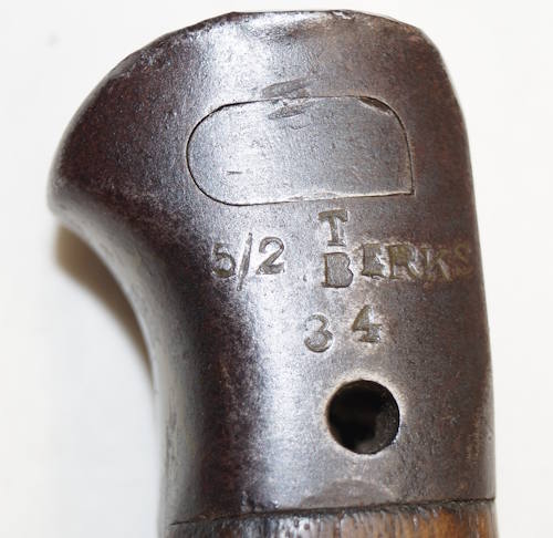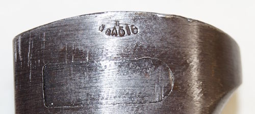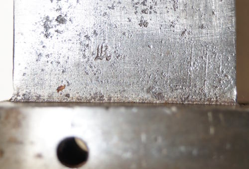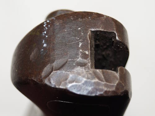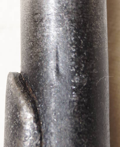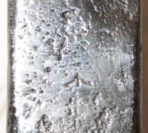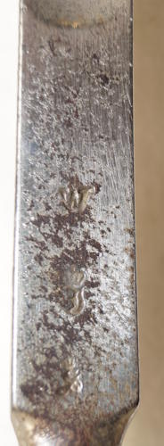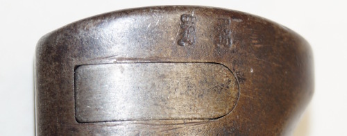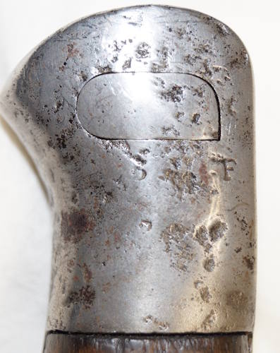 the pommel. There are hammer marks on the butt of the pommel and a small spot