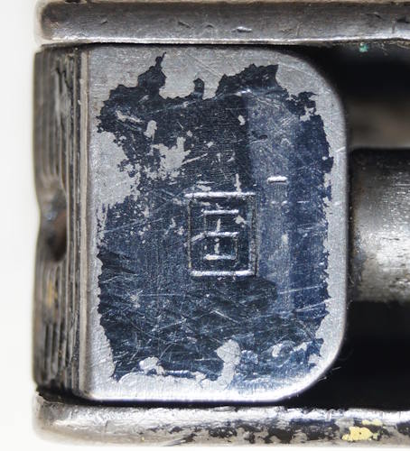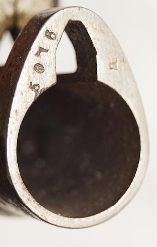 remnants of the inspector's markings visible. There is a crack in the locking