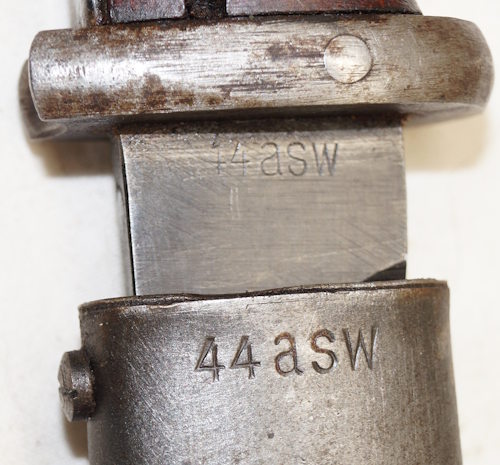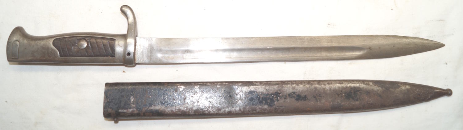 SAXON Entire bayonet and scabbard were painted silver at some time and was