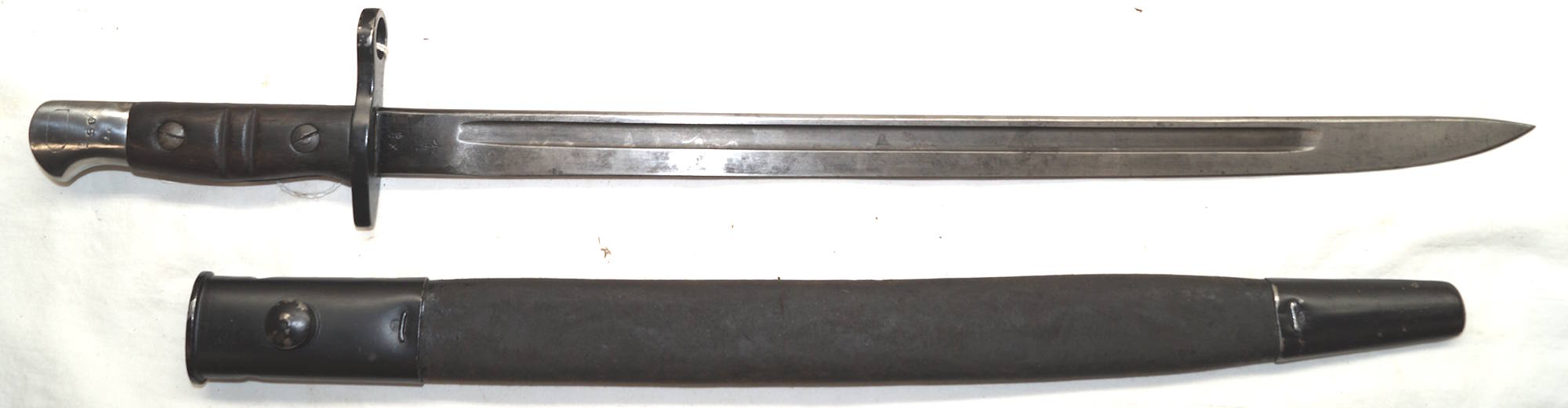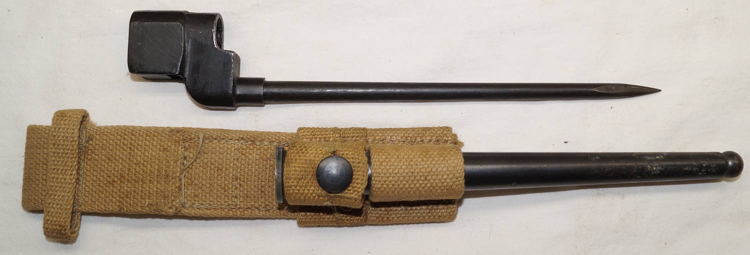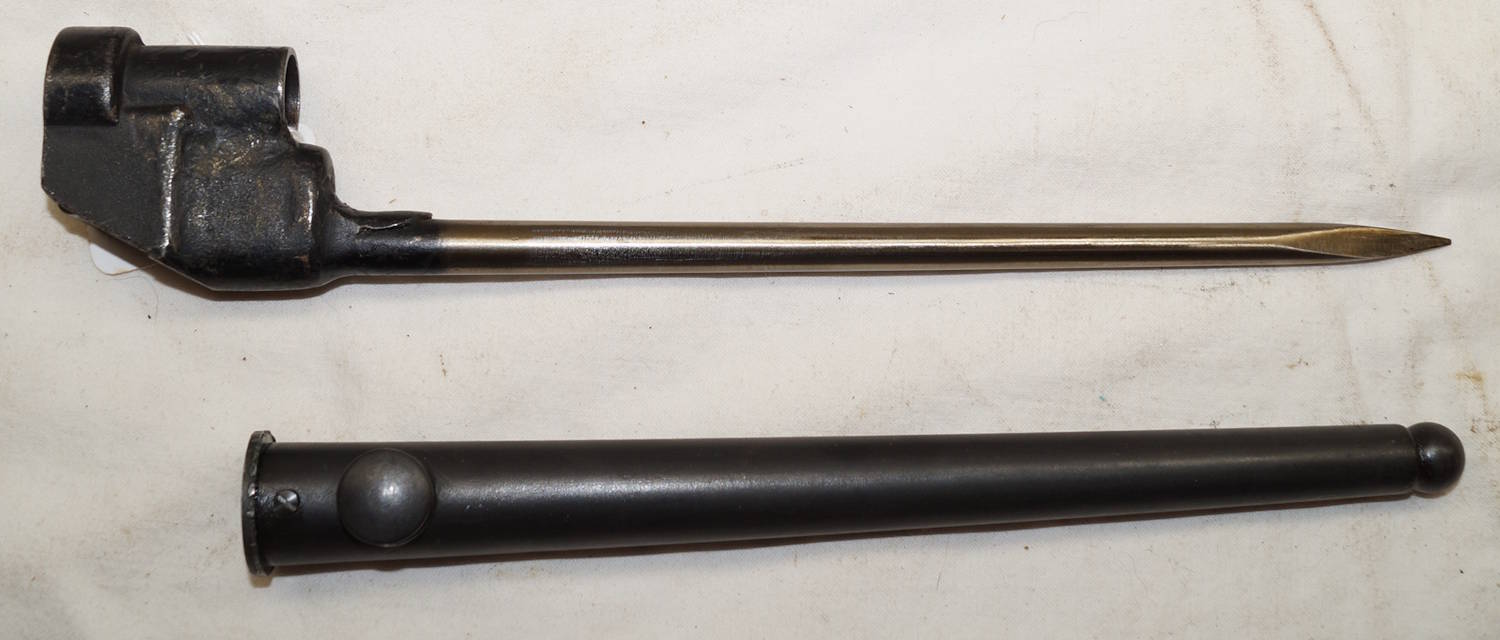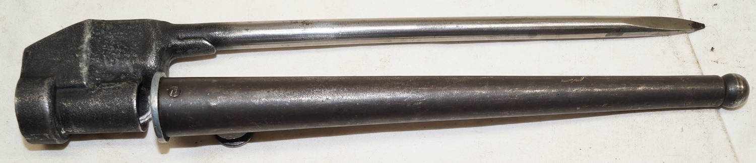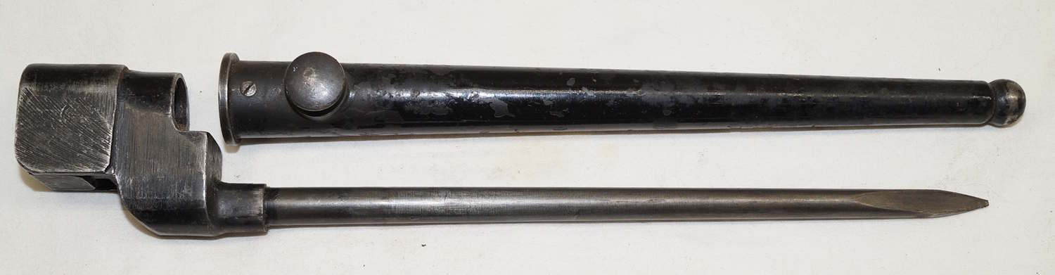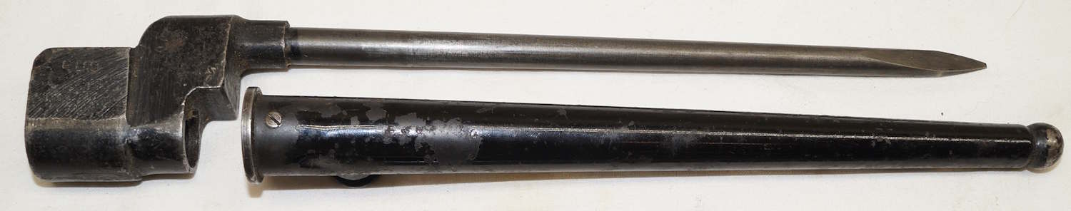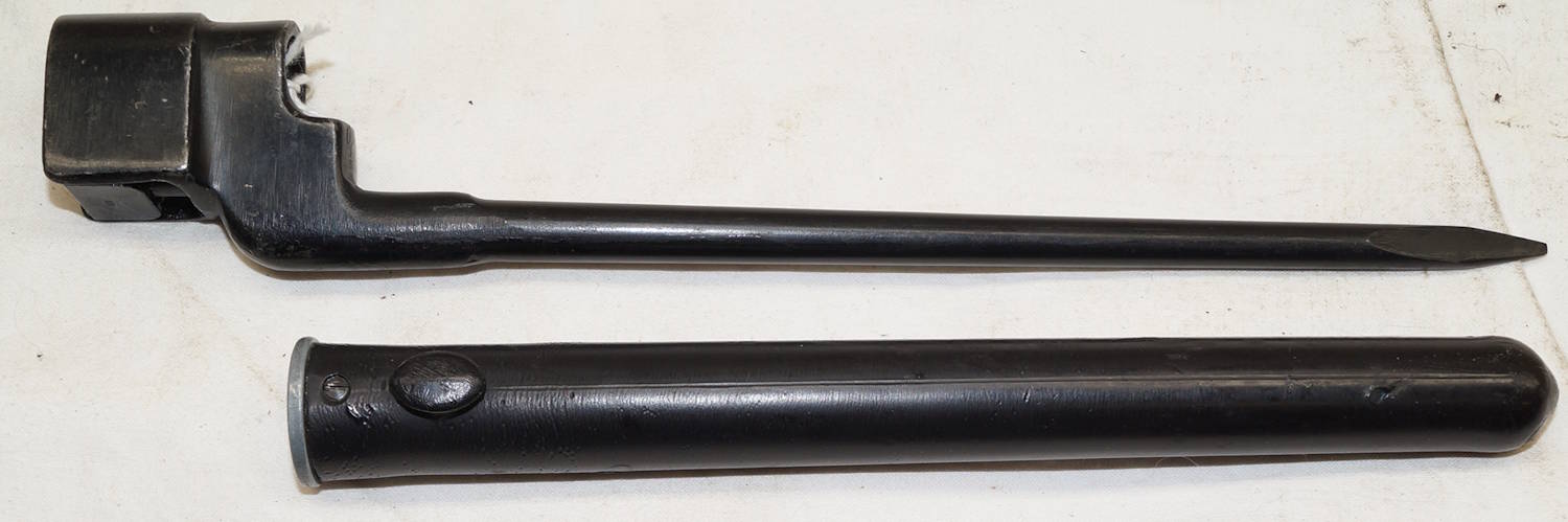dismounts smoothly from the rifle. Scabbard remains complete but the fittings