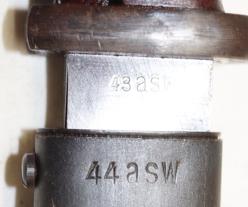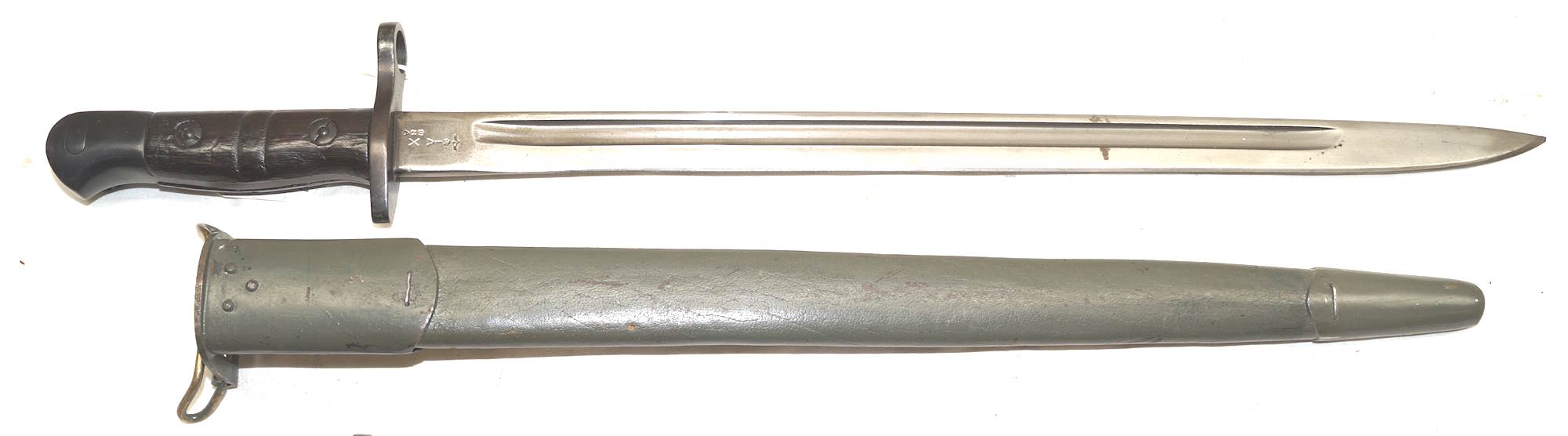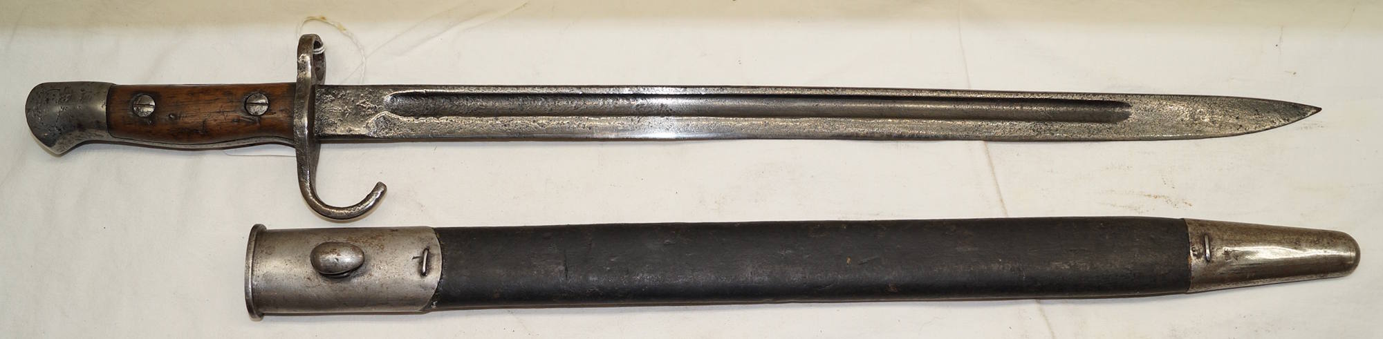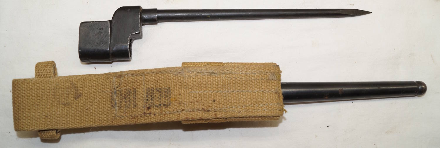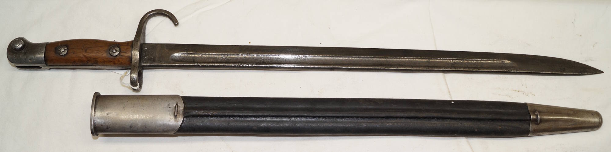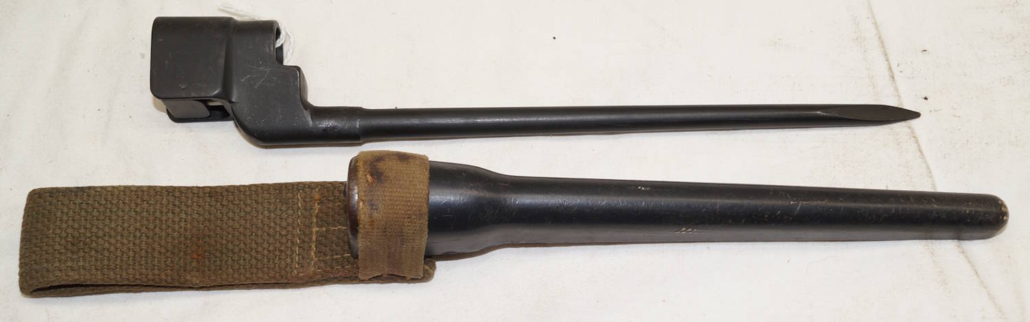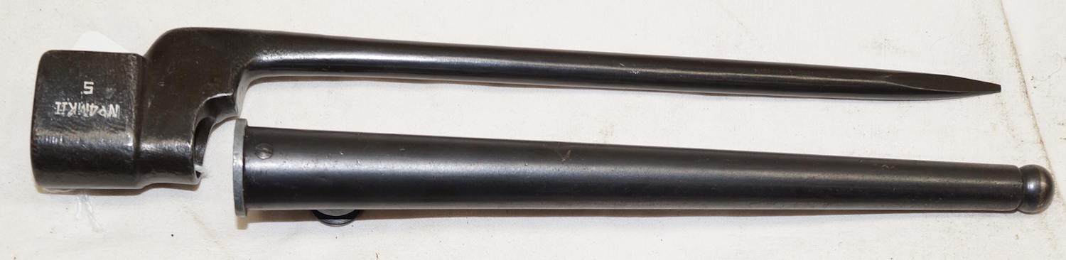 dismounts smoothly from the rifle. Scabbard remains complete but the fittings