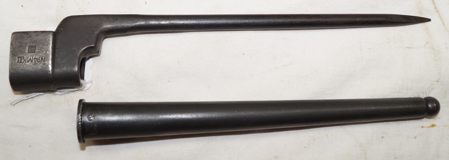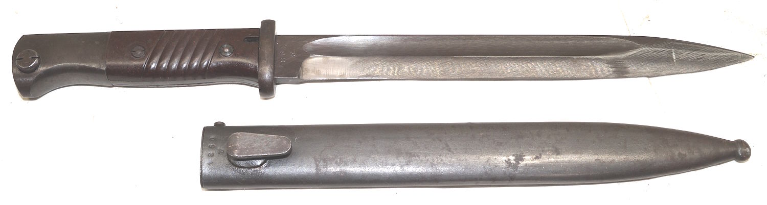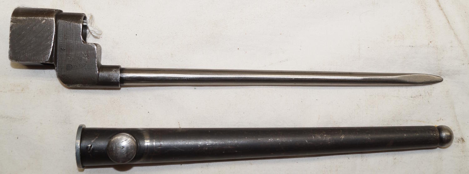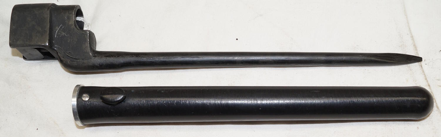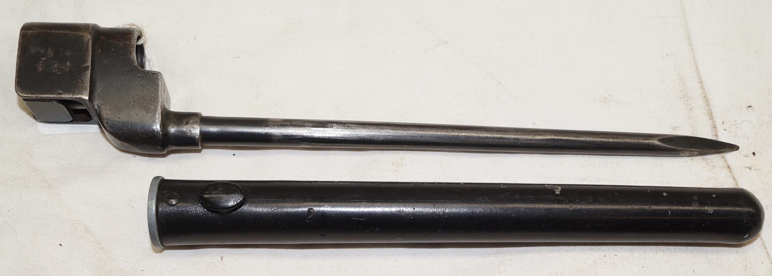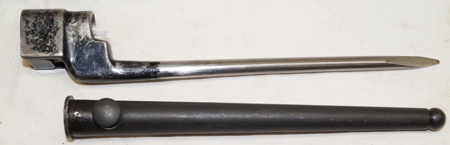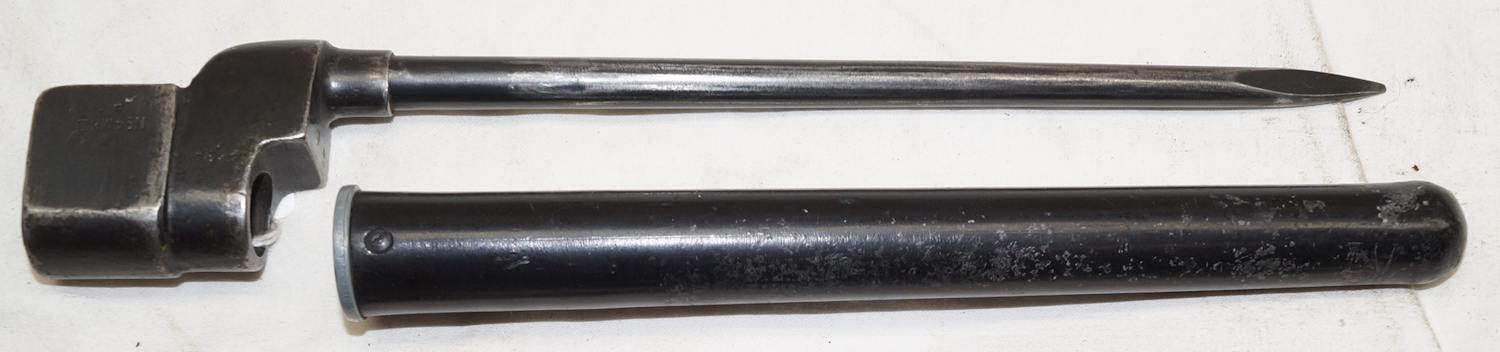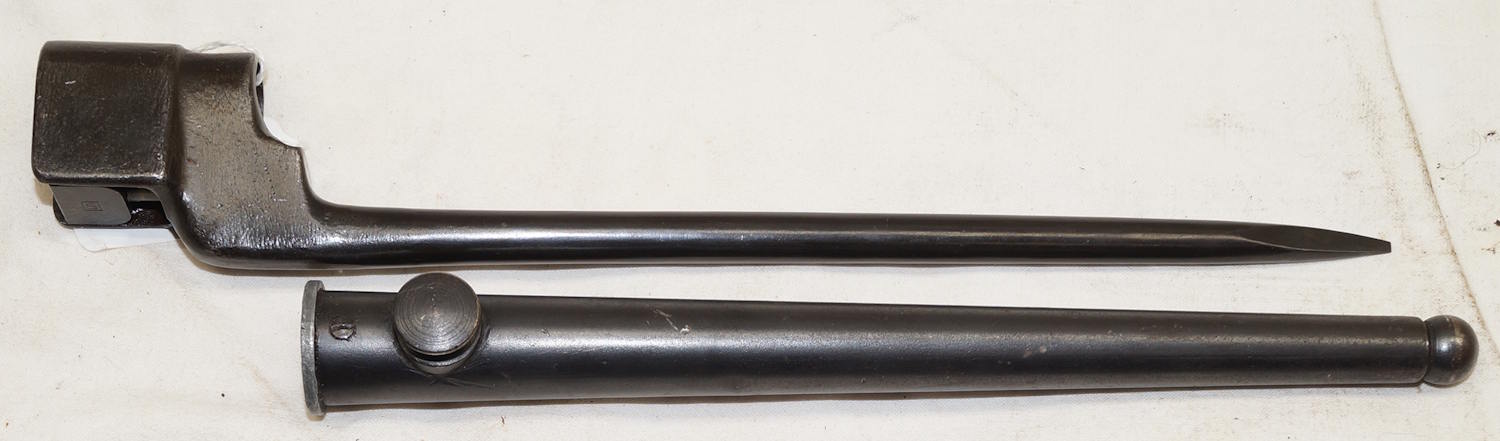 17432 Rivetted hilt Parallel blade ersatz bayonet with S98/05 scabbard.