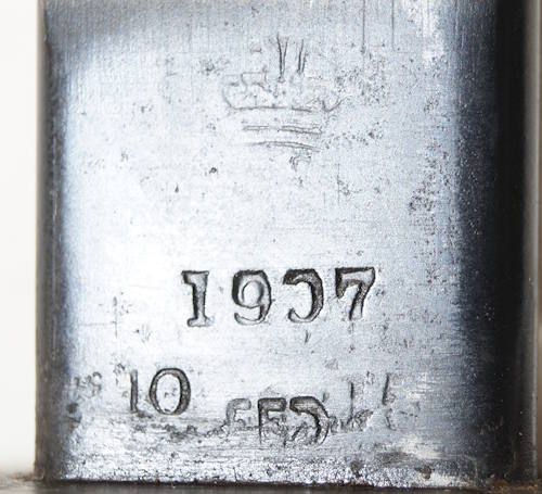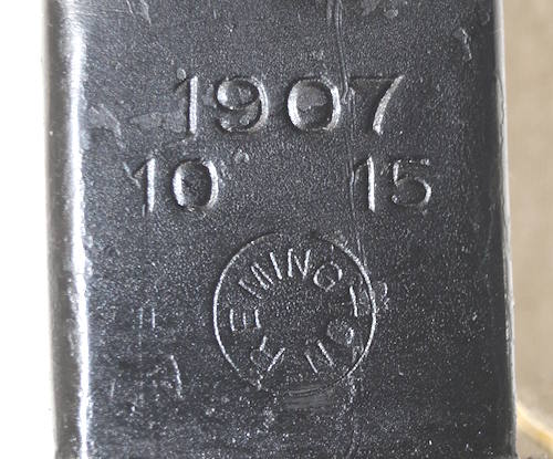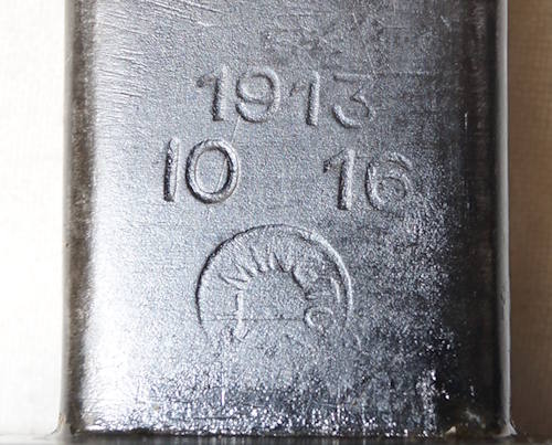 18255 Y:1903/14 bayonet Star marked ricasso BREDA Blade is dark with some pitted spots. The worst pitting is at the tip on the left side and I have included a close up picture of it.