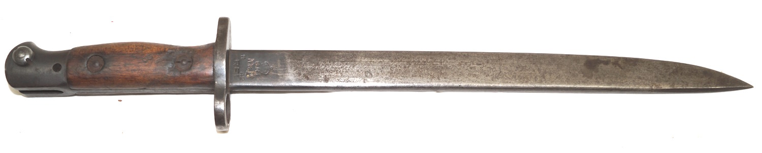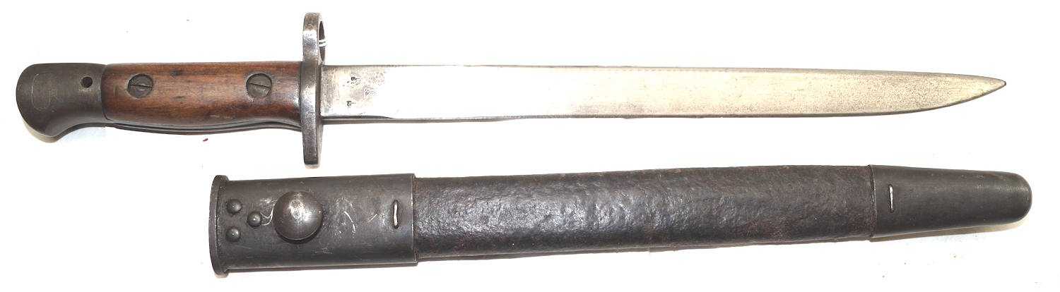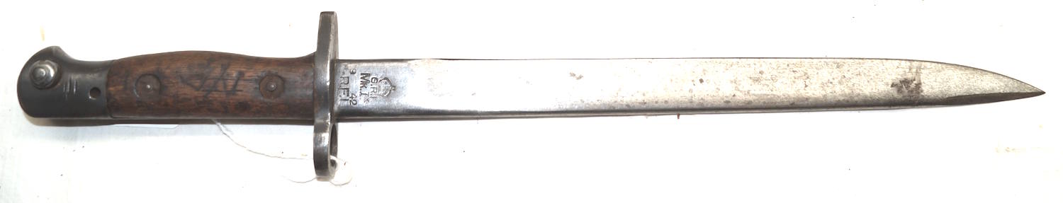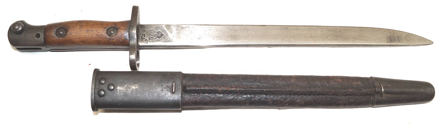 18042 MkIII bayonet with later cobbled scabbard. This is a genuine MkIII