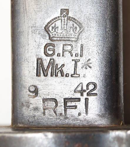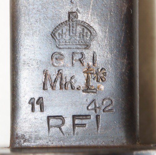 18473 MkIII* bayonet with scabbard.RFI 7/45 Unlike most of these the ricasso mark is actually purposely Mk.III instead of Mk.II but the * was never added. This is also NOT a Mk.II mark with the 3rd I added.